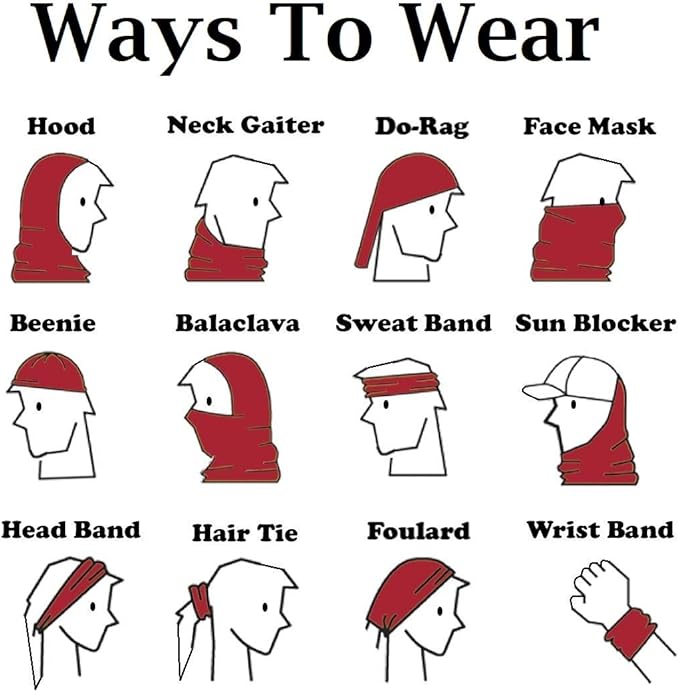 - VERSITILE:Tubular bandannas can be used as headband, wristband, mask, scarf, hairband, do-rag, bandana, skull cap, balaclava, neck gaiter, scrunchy, hair tamer, and more!