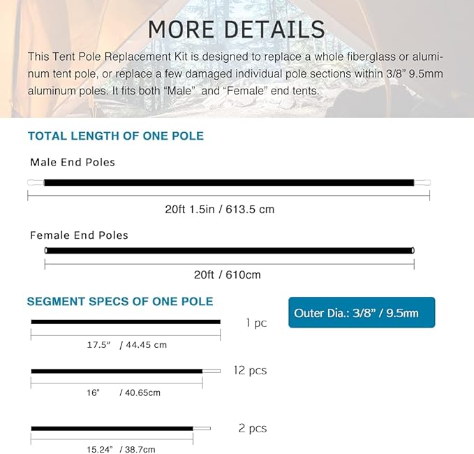 - FIT MALE & FEMALE ENDS - Not all tent poles have MALE ends. You could assemble our tent pole repair kit to make it either MALE or FEMALE.