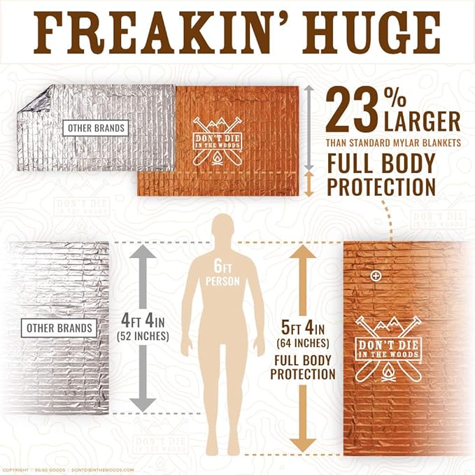 ![Don't Die In The Woods - Freakin’ Huge Emergency Blankets [4-Pack] Extra-Large Thermal Mylar Space Blankets with Ripstop Nylon Stuff Sacks + Carabiner Zipper Pack [Survival Orange]](http://outdoorhavenworld.com/cdn/shop/files/61rp2TCnoDL._AC_4a104d2e-7e95-41b4-b7d4-c3fc479f4273.jpg?v=1758169514&width=1445)
