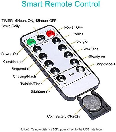 - Remote control with Timer function: the lights are controlled by remote, save you a lot of troubles. It is much more convenient to control with timer function. You have 8 different modes of light effects, isnot it cool?