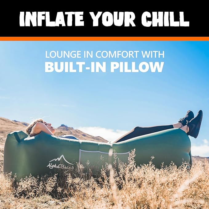 - Easy Inflation Design -- No pump required for AlphaBeing air lounger. Just a few scoops of air and this inflatable lounger is ready to hangout in. This is a must-have for any BBQ, Beach, Hike, Concert, or Camping Trip. Folding to 12"x 8"x 4"and fitting in its own carrying bag with shoulder strap, this air sofa is ready to be taken anywhere with you.