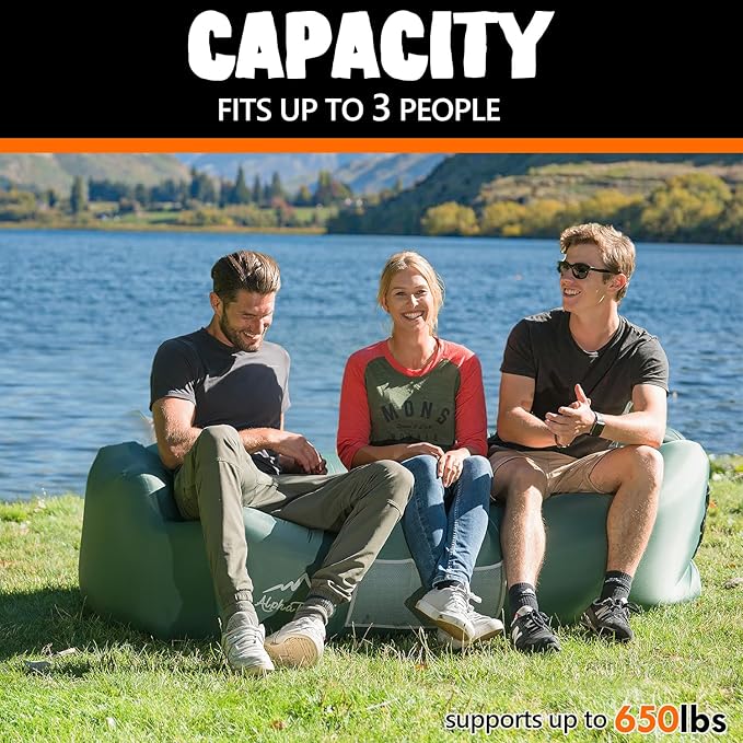 - Anti-Deflation Technology -- Love the idea of an inflatable couch but hate the idea of constantly needing to fill it up? Thanks to our anti-deflation technology, our air chair retains air twice as long as other Inflatable Loungers for an experience that is amazing! Our lounger is made with superb craftsmanship and high-quality Ripstop fabric that is lightweight, comfortable and strong enough to support 650lbs!