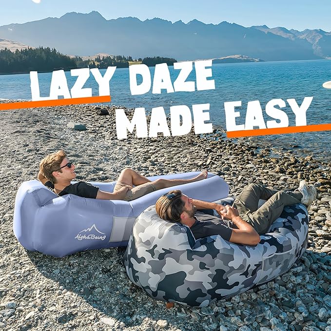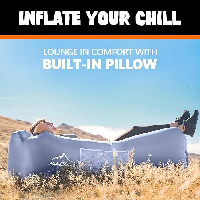 - Easy Inflation Design -- No pump required for AlphaBeing air lounger. Just a few scoops of air and this inflatable lounger is ready to hangout in. This is a must-have for any BBQ, Beach, Hike, Concert, or Camping Trip. Folding to 12"x 8"x 4"and fitting in its own carrying bag with shoulder strap, this air sofa is ready to be taken anywhere with you.
