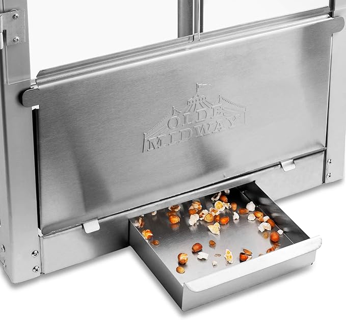 - Warming deck & kernel tray: Built-in warming deck and heat light are just like a professional-grade popcorn machine, keeping popcorn warm and fresh. The machine also features a reject kernel tray, or old maid's drawer, for any loose un-popped kernels, ensuring every batch is served up perfectly.