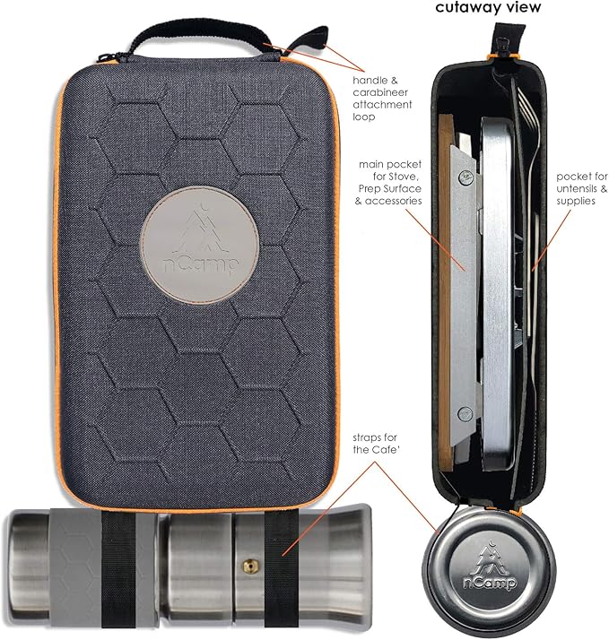 - Secure Your Camping Essentials - Store your prep surface, lighting sticks, and propane adaptor in this camping stove backpacking case. It's nifty storage for camping stove accessories with built-in straps to hold the nCamp Cafe Coffee Maker.