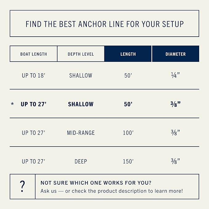- Top-Quality Boat Rope You Can Trust: Keep your boat safe and secure with our durable, anchor rope. Our 50’ x 3/8” nylon anchor rope works perfectly with boats up to 27 feet long. Each boating rope has a breaking strength of 4,035 lbs and a recommended maximum working load of up to 820 lbs.