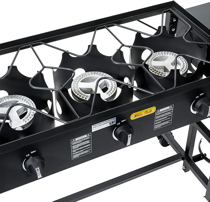 - Triple-Burner - Powerful 87,000 BTU propane range double burners with large temperature controlling knobs for adjustable flame and quick heating