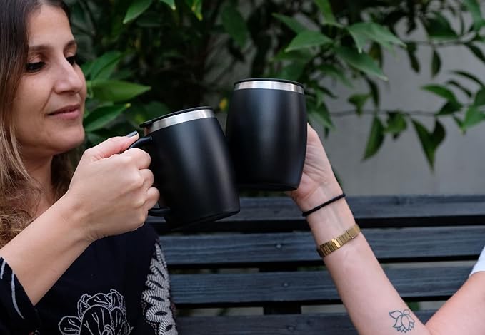 CHILLOUT LIFE Stainless Steel Insulated Coffee Mugs Set of 2 (14 oz) - Double Wall Coffee Cups With Spill Resistant Lid & Strong Handle, Shatterproof Cups for Cold Drinks, Hot Beverages