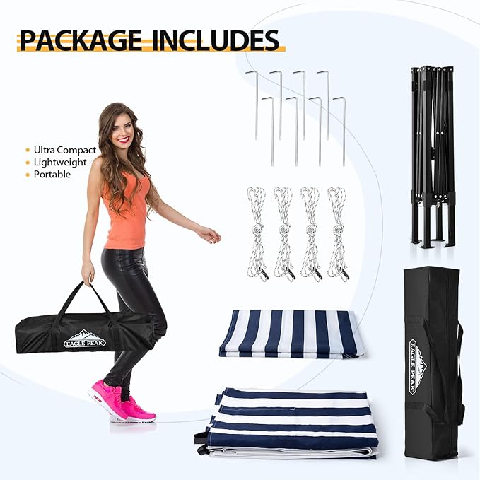 - EASY TO SETUP AND PUT AWAY: The EAGLE PEAK pop up system is more flexible and makes setup easy. The frame glides when opening and closing, enabling one person to easily open and close the canopy .