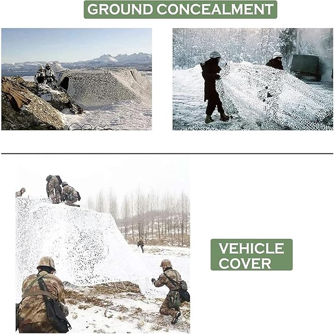 - Free Cutting: Camouflage netting can be easily cut to any size; you can use the included zip ties to fix it. Camo net can match with a variety of background colors, so you can observe the surrounding terrain well, providing maximum concealment in the field