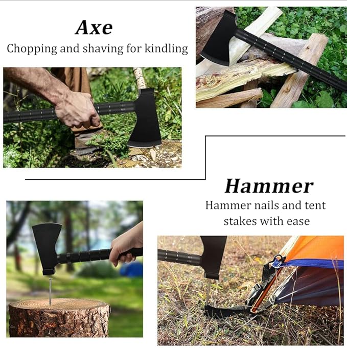 IUNIO Survival Off-Roading Tool Kit, 19 in 1 Folding Shovel, Camping Axe, Multitool, Pickaxe, with Carrying Bag, for Outdoor, Car Emergency (Upgrade Black)