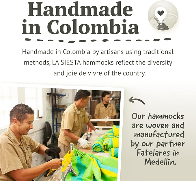 - ARTISAN CRAFTED IN COLOMBIA: Experience the Colombian craftsmanship with our handmade double hammock, each piece reflecting the vibrant spirit and diversity of Colombia. Enjoy unique comfort created through fair working conditions, climate-neutral production, and mutual respect.