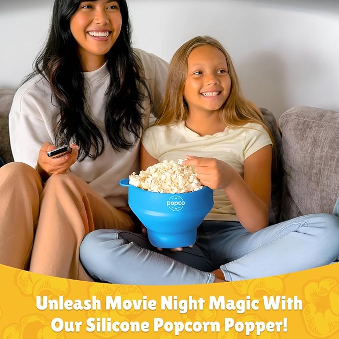 - WHY CHOOSE SILICONE OVER GLASS?: Glass popcorn poppers are fragile, can cause burns and have potential to shatter if dropped. Our silicone Popco popcorn popper bowls come with a lid and convenient, built-in handles. The bowl is uniquely designed to spread the heat evenly so you will get delicious popcorn with very few, if any unpopped kernels. Our Popco popcorn poppers are kid and family friendly; made with heat resistant, non breakable, food-grade silicone.