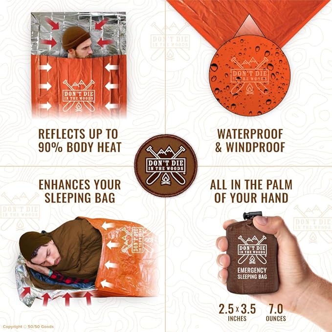 - ULTRALIGHT, WATERPROOF, & SUPER COMPACT – Hate carrying extra weight? It’s so small and light, you’ll forget it’s even there. We’ve designed the DDITW Emergency Sleeping Bag with the perfect balance of durability & weight at only 7 ounces (the weight of a small apple). Stash them in each of your cars and backpacks and always be prepared.
