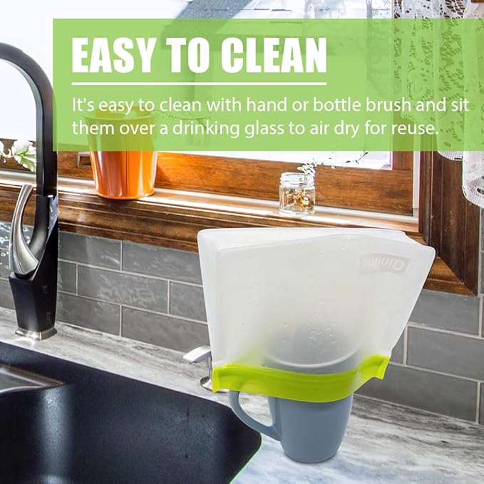 - REUSABLE FOOD GRADE MATERIAL & EASY TO CLEAN: Made of food-grade PEVA material, Qinline reusable storage bags are non-toxic, save your money. We recommend HAND WASH, for the dishwasher will damage the double closure of the food storage bags. It is easy to clean with the bottle brush and put the bags on the top of a mug or cup to air dry. Using Qinline reusable non-toxic storage bags to save our planet and save your money