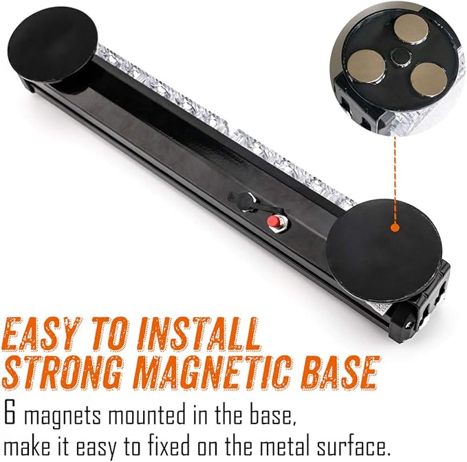 - Easy Use - 4 Different patterns of strobing/flashing with just a press of a button,(Full bright and Left, Right). 8 magnets mounted in the base,make it easy to fixed on the metal surface.