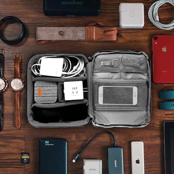 - 【LRGE CAPACITY & ORGANIZED】SAY GOOBYE TO YOUR MESSY CABLE. Keep all your electronics accessories organized. Multiple pockets and elastic loops sleeve offer great flexibility for packing electronics accessories such as USB Cable Cord, Cellphone, Flash Drive, Wall Charger, SD/TF Card, Hard Drive, Power Bank, Earbuds, Mini Camara.
