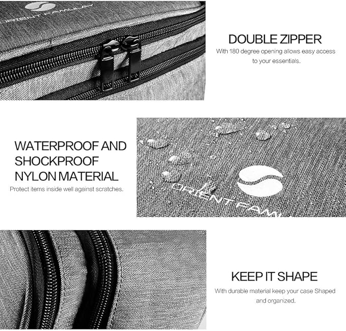 ORIENT FAMULAY Travel Organizer, Waterproof Cable Bag for Electronic Accessories Double Layer Large Shockproof Storage Bag for Cord, Hard Disk, Power Bank, Tablet -Gray