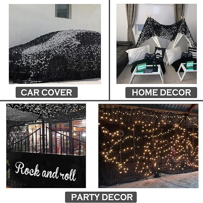 - Applicable Scenarios: Camo netting comes in a variety of colors and sizes, perfect for jungle theme decorations,military party decorations, hunting, house decoration, fencing, roof shade, camping, movie sets, bird watching, CS games, camo car covering etc. You are only limited by your imagination