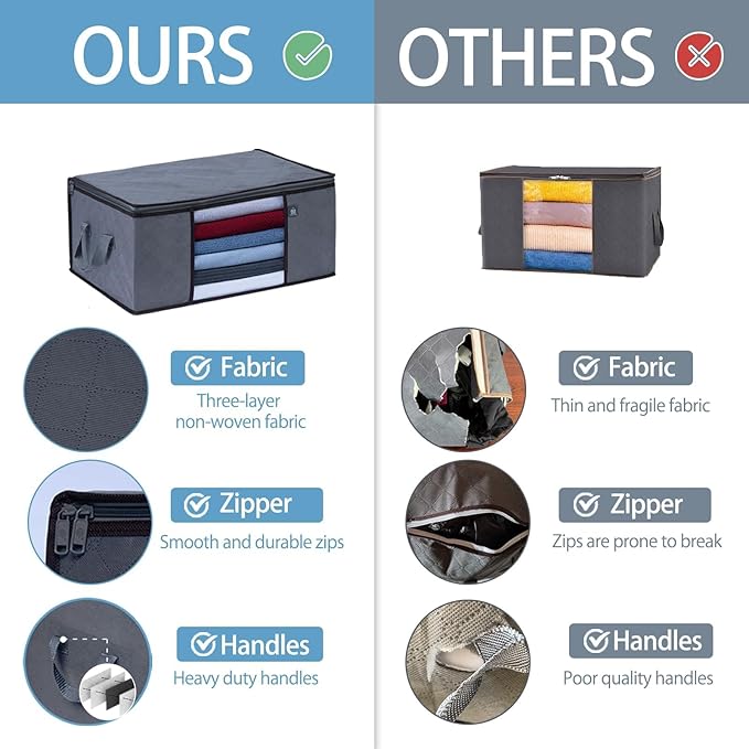 - REINFORCED HANDLES: Thick, strong, reinforced handles are designed for convenient access and portability without breaking or tearing. Handles are sewn with 6 layers of quality, sturdy fabric to double the load capacity. Cross-stitched seams are added for maximum strength and security.