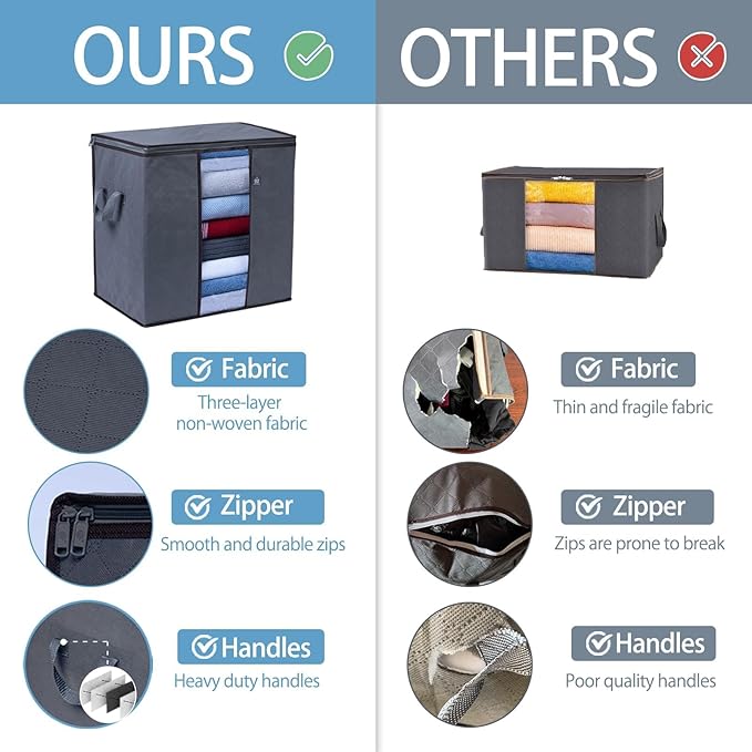 - REINFORCED HANDLES: Thick, strong, reinforced handles are designed for convenient access and portability without breaking or tearing. Handles are sewn with 6 layers of quality, sturdy fabric to double the load capacity. Cross-stitched seams are added for maximum strength and security.