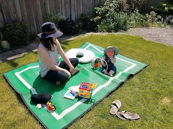 5x7 Green Outdoor RV Mat with Carry Bag – Extra Thick 5mm Recycled Poly Rug – Waterproof, Heavy-Duty, Reversible – Luxury Camping Mat for Patio, Beach, Deck (Green with Carry Bag, 5'x7')