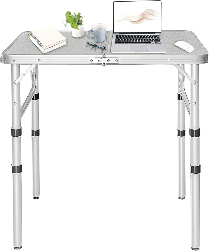 RedSwing Small Folding Table 2 Feet, Small Foldable Table Adjustable Height, Lightweight Portable Aluminum Camping Table, 3 Heights, 23in x 15 in x 10 in