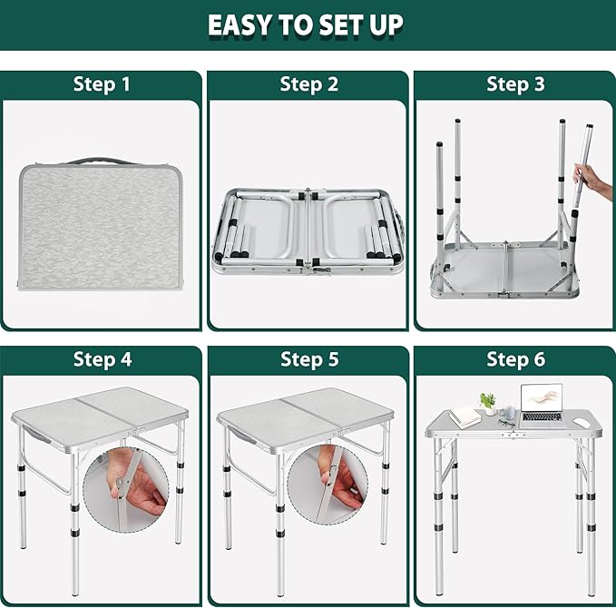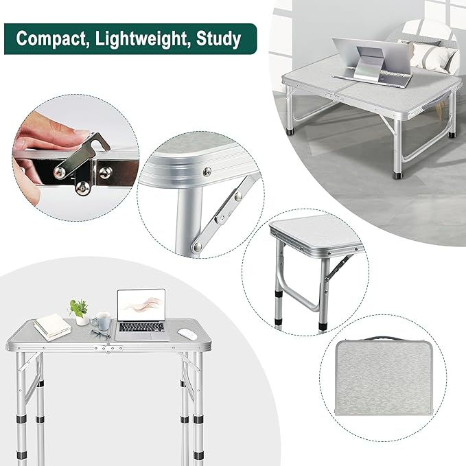 - Compact & Lightweight: The small portable table weighs 5.5lbs, holds up to 70lbs.