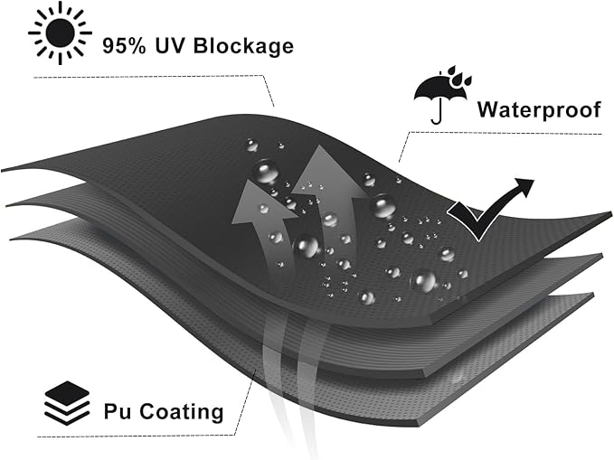 - ?�Waterproof?‘The shade sail is made of 160GSM PES material, PU coated, blocks up to 98% of UV rays, and has a shade rate of 90%- 95% (white series 85%-90%). It is resistant to light rain and has a water pressure resistance of 400 kPa. Please do not use it in heavy rain or storms