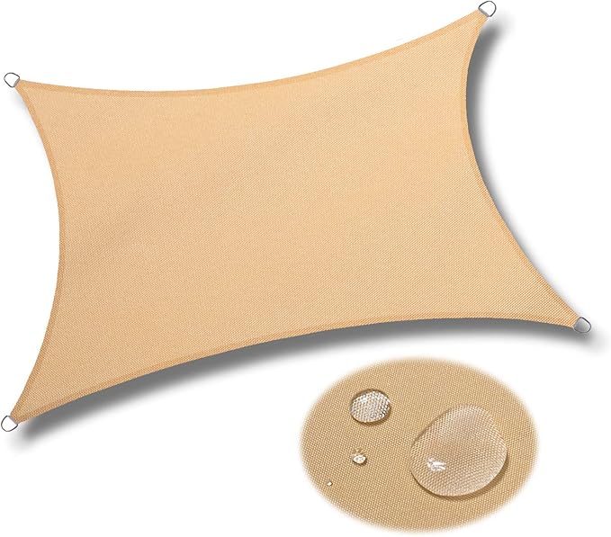 - ?�Waterproof?‘The shade sail is made of 160GSM PES material, PU coated, blocks up to 98% of UV rays, and has a shade rate of 90%- 95% (white series 85%-90%). It is resistant to light rain and has a water pressure resistance of 400 kPa. Please do not use it in heavy rain or storms