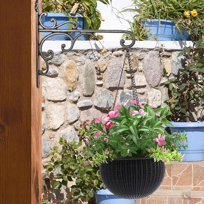 - Material: heavy duty cast iron; vintage style design, a gorgeous hanger for your home and garden, rust resistant and solid construction. very sturdy and durable, can be last for many many years.