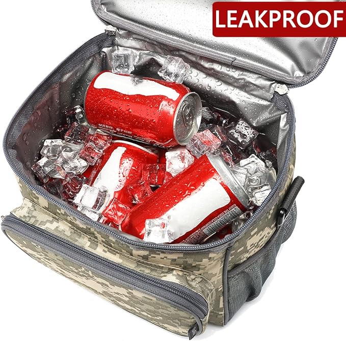 FlowFly Insulated Reusable Lunch Bag Adult Large Lunch Box for Women and Men with Adjustable Shoulder Strap,Front Zipper Pocket and Dual Large Mesh Side Pockets,DigitalCamo