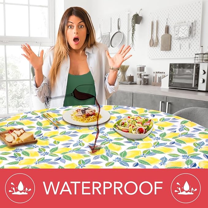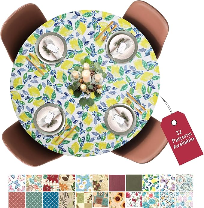 LAMINET Elastic Fitted Table Cover - Contemporary Lemon - Small Round - Fits Tables up to 44 Diameter