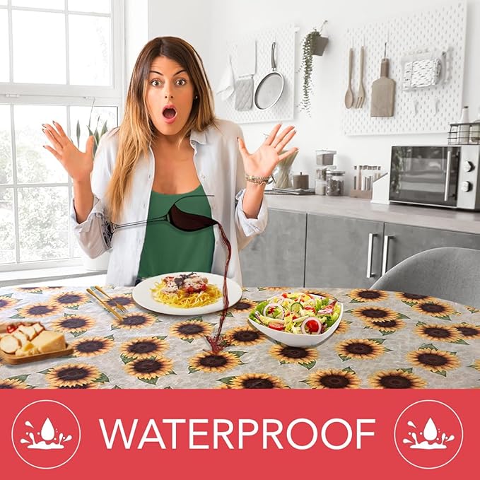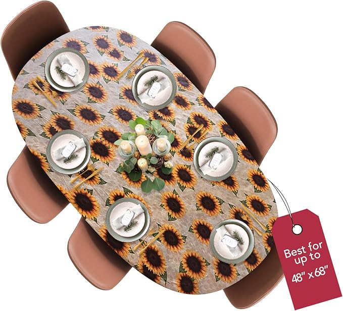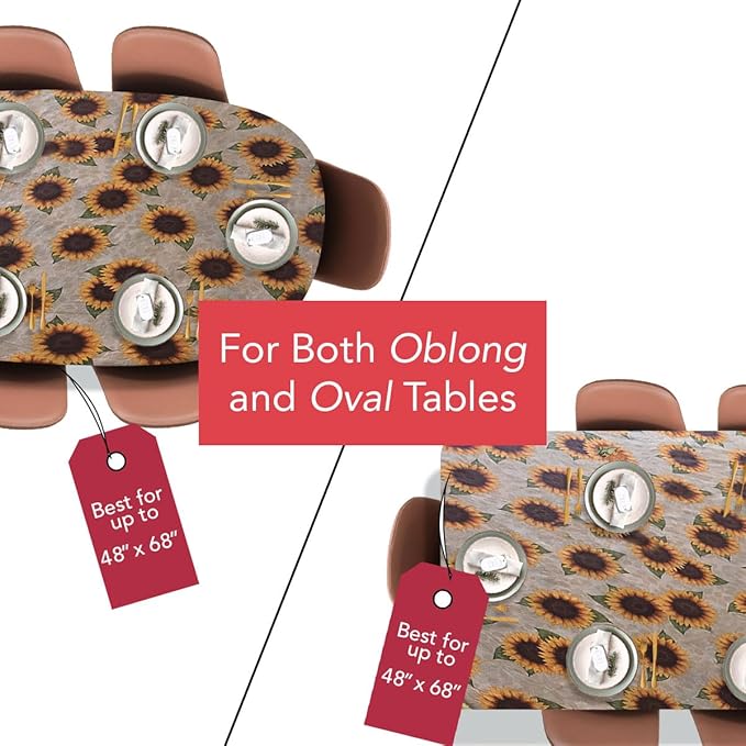 LAMINET Elastic Fitted Table Cover - Sunflower - Oblong/Oval - Fits Tables up to 48" x 68”