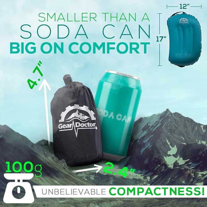Gear Doctors Inflatable Camp Pillow - Backpacking, Blue