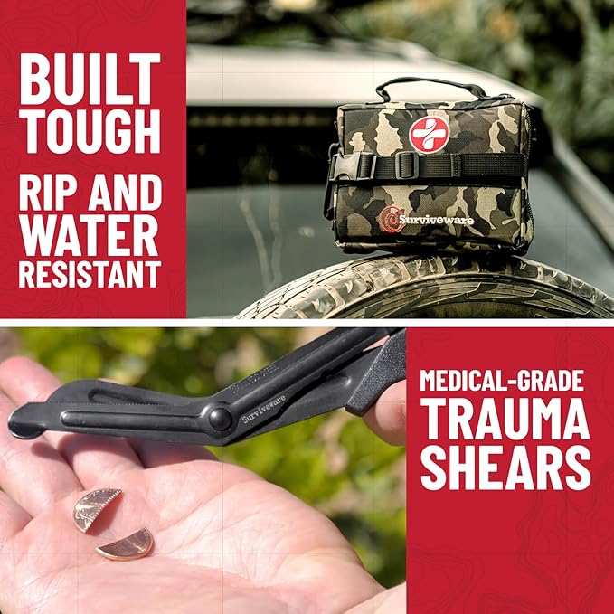 Surviveware 119 Pcs Comprehensive Premium Survival First Aid Kit - Medical Emergency Kit for Travel Camping Gear, Home Essentials & Outdoor Emergencies - HSA & FSA Eligible Survival Kit