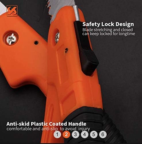 - Safety lock blade - Once saw blade is folded closed it cannot be opening until pressing safety latch