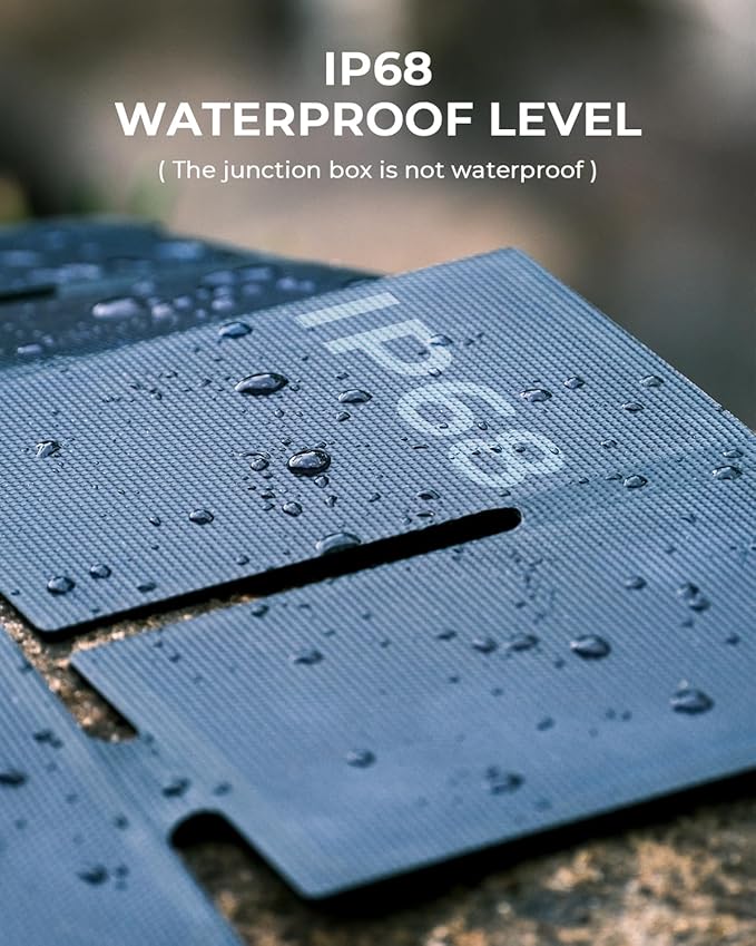 - IP68 Water and Dust Resistance: Rated IP68, this portable solar panel is designed to endure splashes, spills, and light rain, ensuring reliable performance during outdoor adventures in unpredictable weather. What's Included: 1x 25W solar panel charger, 1x USB-C to USB-C cable, 2x carabiners, and 1x elastic strap.