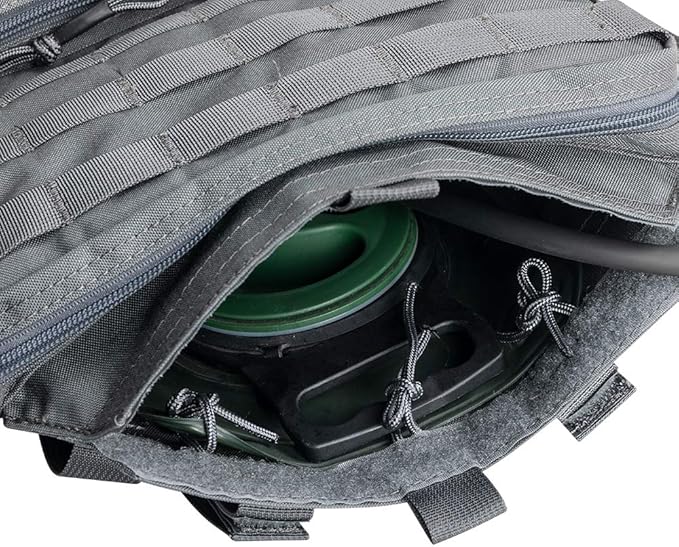 - With the molle system.The water bag can be attached to your tactical vest or tactical backpack.This hydration bundle pack can accommodate 3 L of water bladder.Please note that this carrier doesn't contain water bladder.