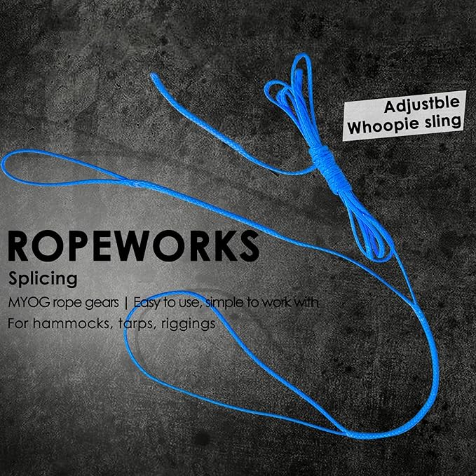 - 100% UHMWPE Braided Cord 1.3mm, 1.6mm, 2mm: 520~1000Lb high strength provided, hollow braid, spliceable for making whoopie slings, extra light. High adaption to wild outdoor environment, widely used as guy line, ridgeline for tent, tarp, rain fly and hammock, powerful cord at hand when camping, backpacking, survival, emergency, hunting, boating, etc.