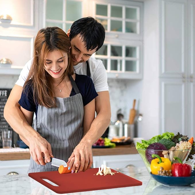 Fotouzy Plastic Utility Cutting Board with Handles, Food Safe PP Material, BPA Free, Dishwasher Safe, Thick Chopping Board, Large Size, Easy Grip Handle, for Kitchen (Red),15.5 x 10"