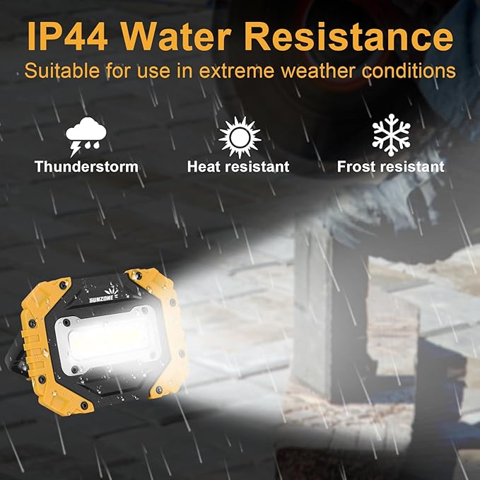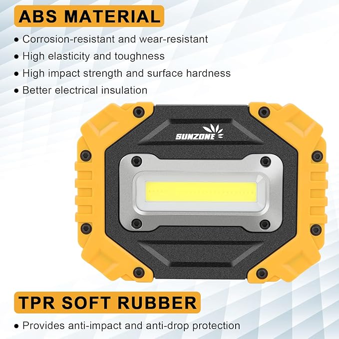 Sunzone LED Work Light, Rechargeable Magnetic Flood Lights with Stand, Waterproof Portable Job Site Lighting for Camping, Fishing, Hiking, Car Inspection with Emergency Mode (2 Pack)
