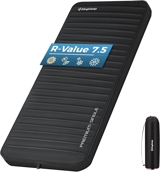 - HIGH R-VALUE 9.5 FOR SUPERIOR INSULATION: The KingCamp foam sleeping pad boasts an impressive R-value of 9.5, offering excellent insulation to keep you warm by effectively blocking the cold ground. Whether you're camping in chilly spring, fall, or winter conditions, this pad ensures you stay cozy and comfortable all night long.