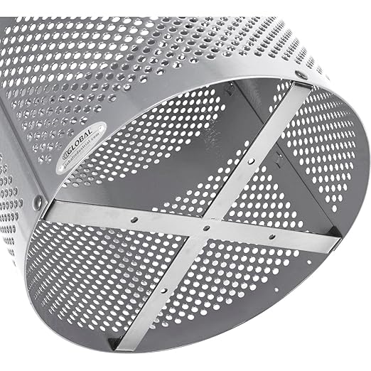 Global Industrial 32 Gallon Outdoor Perforated Steel Round Trash Can with Rain Bonnet Lid, Plastic Liner and Anchor Kit Included, 23-1/2" Diameter x 40-1/2"H, Gray