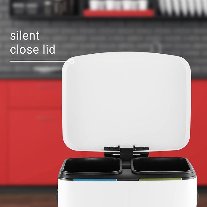 happimess HPM1005C Marco Rectangular 10.5-Gallon Double Bucket Garbage Can with Soft-Close Lid, White