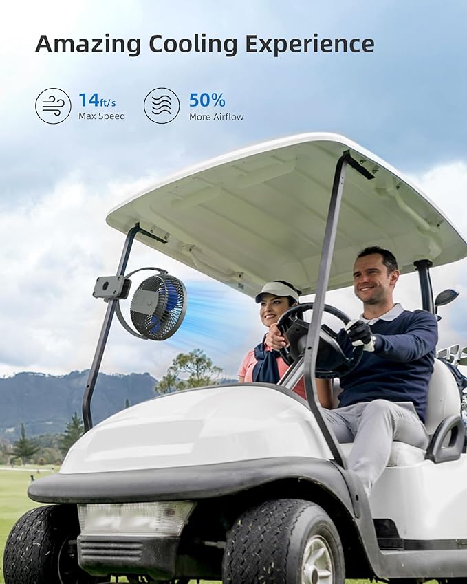 Koonie 10000mAh Rechargeable Portable 8-Inch Clip-on Fan, USB Car Fan 4 Speeds, Sturdy Clamp for Office Desk, Golf Cart, Stroller, Outdoor, Travel, Camping, Tent, Gym, Treadmill