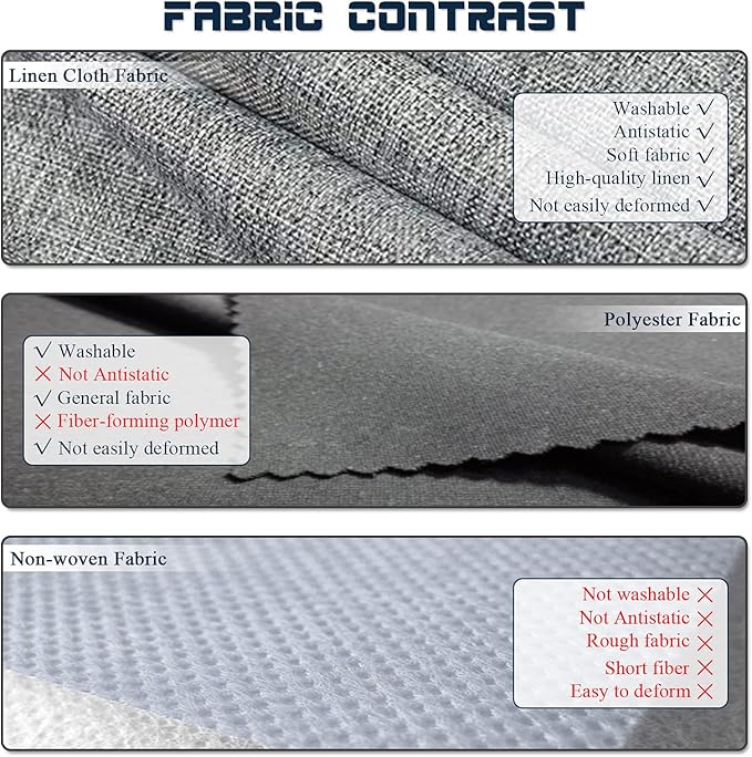 - Material: Crafted from premium Linen which is soft, non-irritant and breathable. The material of the interlayer (environmental honeycomb) is washable PP panels which are non-deformed and good toughness