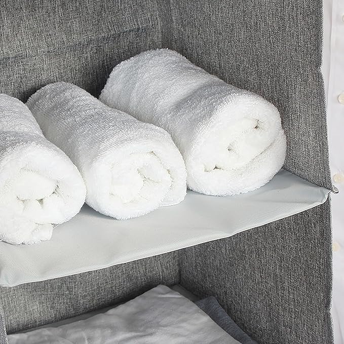 Hanging Closet Organizer, Easy Mount Collapsible 3-Shelf Camper Closet Wardrobe Hanging Storage Shelves, Folded Clothes Towels Handbag Shoes Accessories Storage, Linen Cloth, Gray