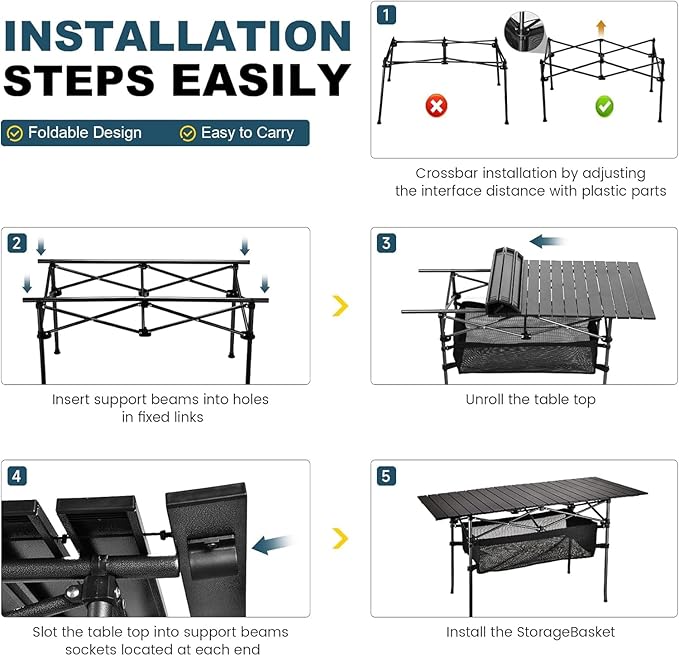 - Easy Assembly & Compact Storage:Unlike traditional folding tables, our roll-up design allows for quick setup and compact storage, saving you time and space.