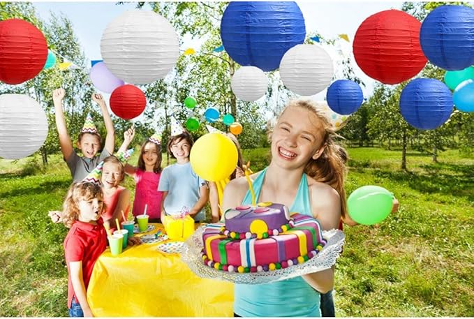 BEISHIDA 21 Pcs Red Blue White Round Paper Lanterns Decorative Hanging Asia Chinese Japanese Paper Lanterns Lamp for Birthday Wedding Baby Bridal Shower Home Decor Party Decoration